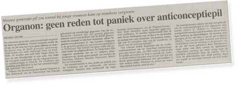 In 2000 groeit de onrust rond Organon’s derde generatie‑anticonceptiepillen vanwege een volgens onderzoek acht keer verhoogd tromboserisico bij jonge vrouwelijke gebruikers. Autoriteiten waarschuwen artsen, waarna Organon overgaat tot crisiscommunicatie: ze verdedigen de veiligheid van de pil, wijzen erop dat risico's al in de bijsluiter stonden en benadrukken dat artsen niet hebben ingesteld op afwijkend voorschrijfgedrag. Daarbij worden woordvoerders getraind en richtlijnen opgesteld om paniek te voorkomen en overzicht te behouden in het communicatieproces.